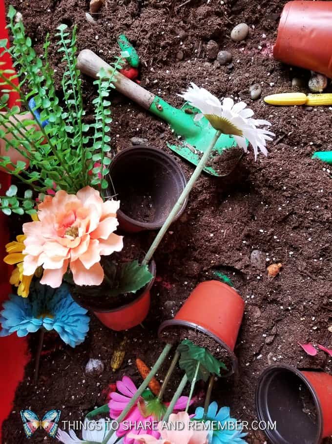 Create a mini “garden” in a bin or tray and let your child explore, build, and create their own little world.