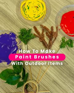 Invite your child to paint using different tools such as flowers, leaves and sticks and explore textures, patterns, and movement.