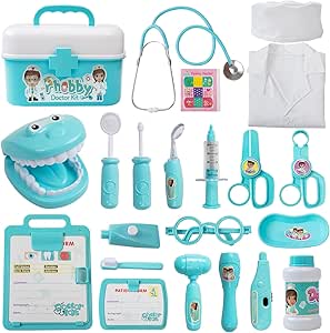This 25-piece pretend play set has everything little ones need to explore the exciting world of dentistry! Featuring an oversized set of teeth with four removable molars, children can practice brushing, cleaning, and even “treating” cavities with fun stickers. The realistic instruments—including a vibrating tool with interchangeable drill and polisher heads, toothbrush, toothpaste, floss, dental rinse, and gauze pads—make playtime feel just like a real dentist visit. Perfect for preschoolers, this engaging set encourages imaginative role play, builds fine motor skills, and helps children feel comfortable with dental care in a fun, hands-on way.